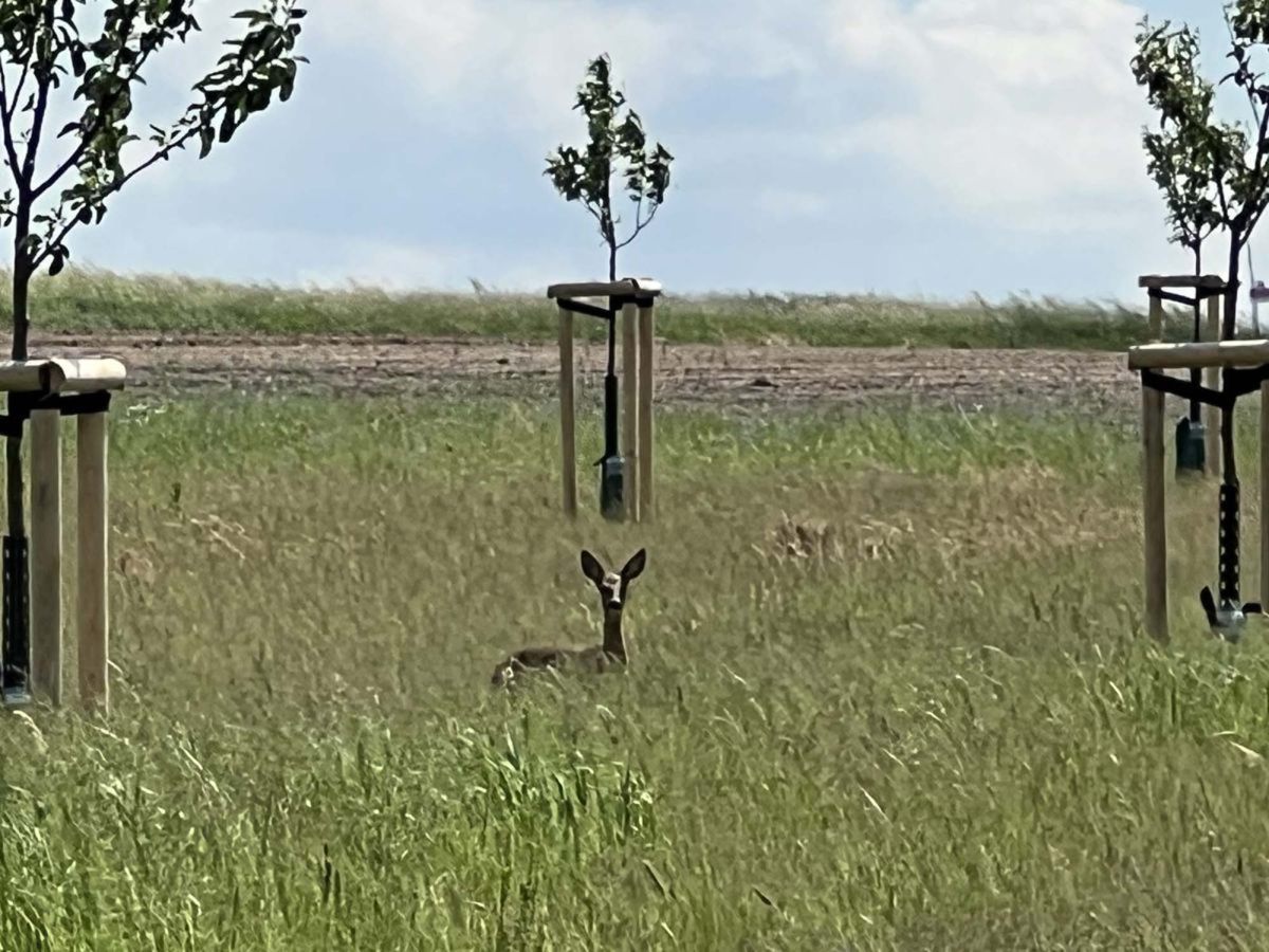 ... und wird bereits gut angenommen. Das Kitz blieb versteckt liegen.